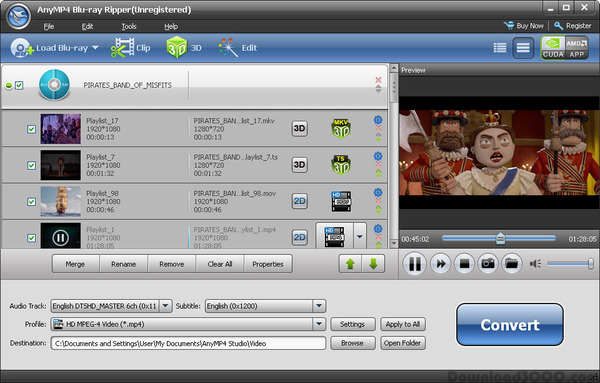 AnyMP4 Blu-ray Ripper is the superb Blu-ray Ripping software, which can help you rip/convert Blu-ray movie to many other popular 2D and 3D video formats with fast speed and high image quality. And you can enjoy them on the portable devices such as iPad 4, iPhone 5C/5S, Google Nexus, Galaxy S4/Note 3, Surface, HTC and more. With it, you can optimize the video effect of trimming the video length, merging several video clips together, adding text/picture watermark and so on. It also provides five 3D modes for you to choose - Anaglyph (Red/cyan), Side By Side (Full/Half-Width), Top and Bottom (Full/Half-Height)